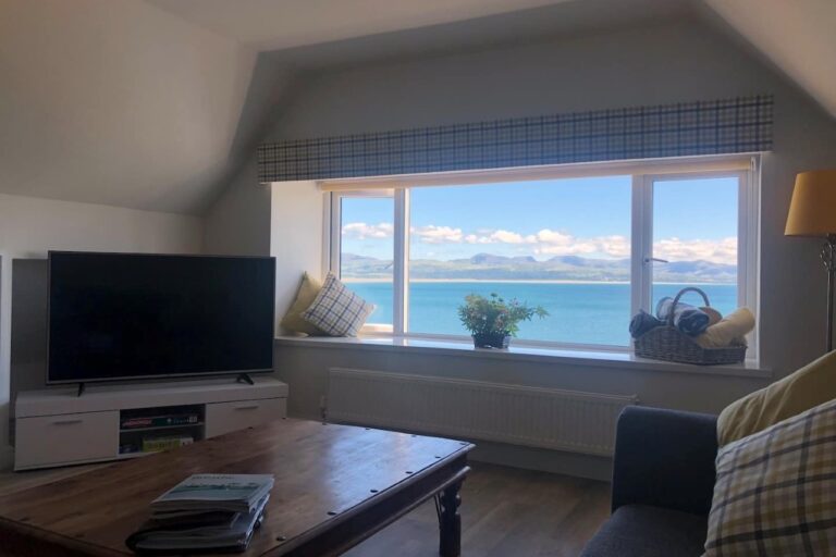 Located in Central Criccieth right on the coast, this apartment boasts the most amazing and mesmerizing sea view across Cardigan Bay to Black Rock Sands and Criccieth Beach and also across to Eryri (Snowdonia) National Park. Above the famous Cadwaladers Ice Cream, Food, and Coffee Shop it is also just a short walk from Criccieth Castle.