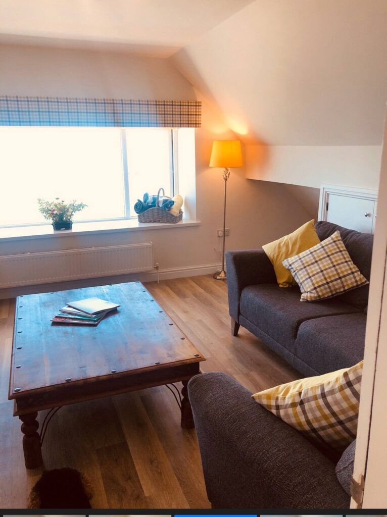A luxury, first-floor, two-bedroomed, dog-friendly apartment with spectacular sea views from the living room.
